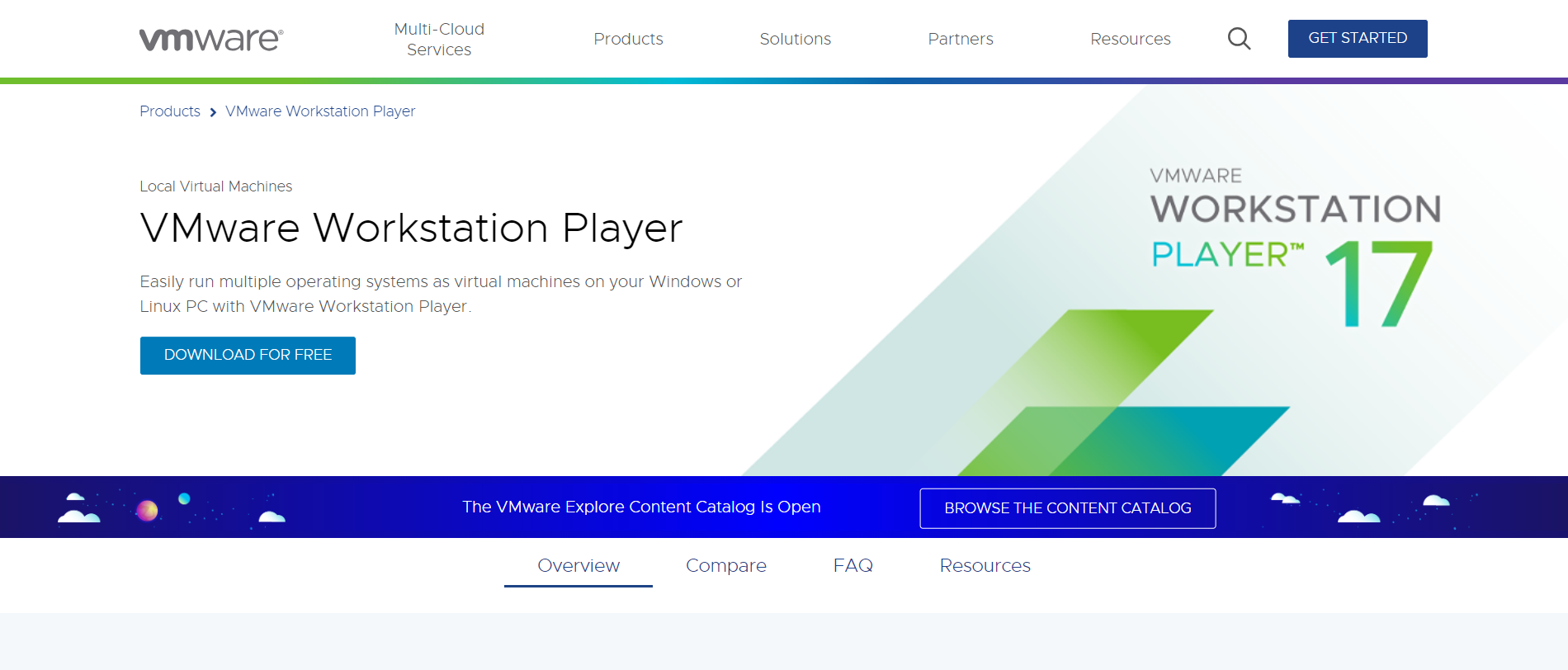 - 단계 1: VMware 공식 웹사이트 (https://www.vmware.com/products/workstation-player.html)에서 VMware Player를 다운로드합니다.